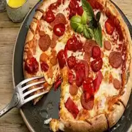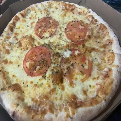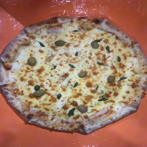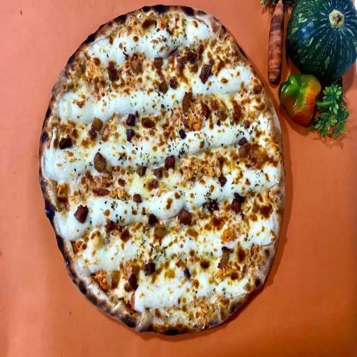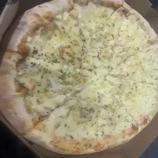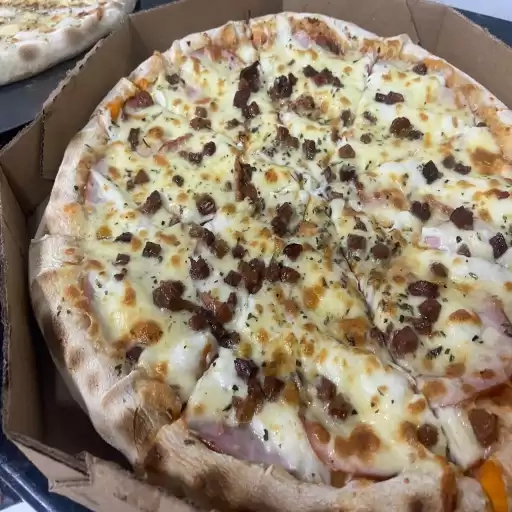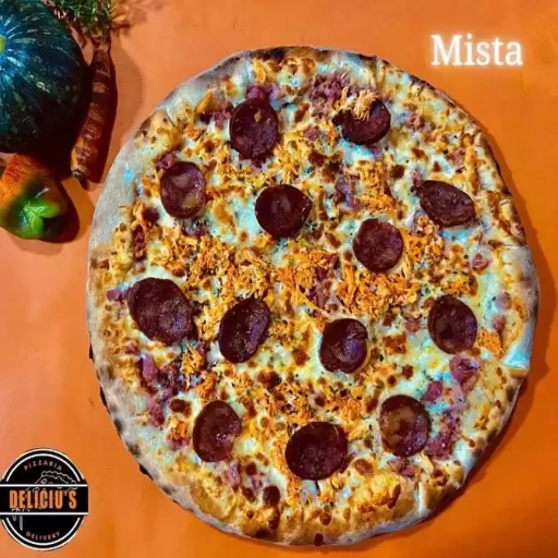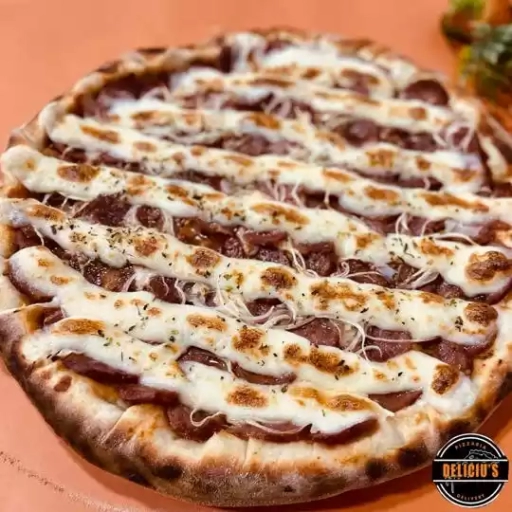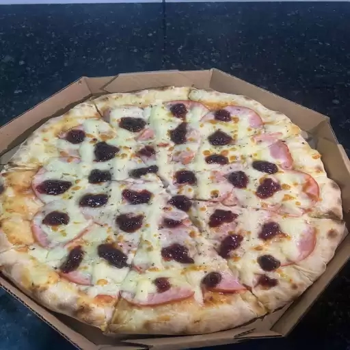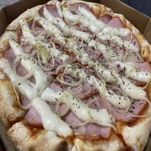 Molho artesanal do chef, mussarela, presunto, frango, calabresa, orégano.