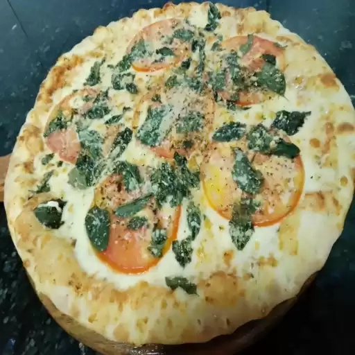 MASSA FINA, MUSSARELA, PEPERONI, CATUPIRY ORIGINA, PROVOLONE, PESTO DE MANJERICÃO E OREGANO